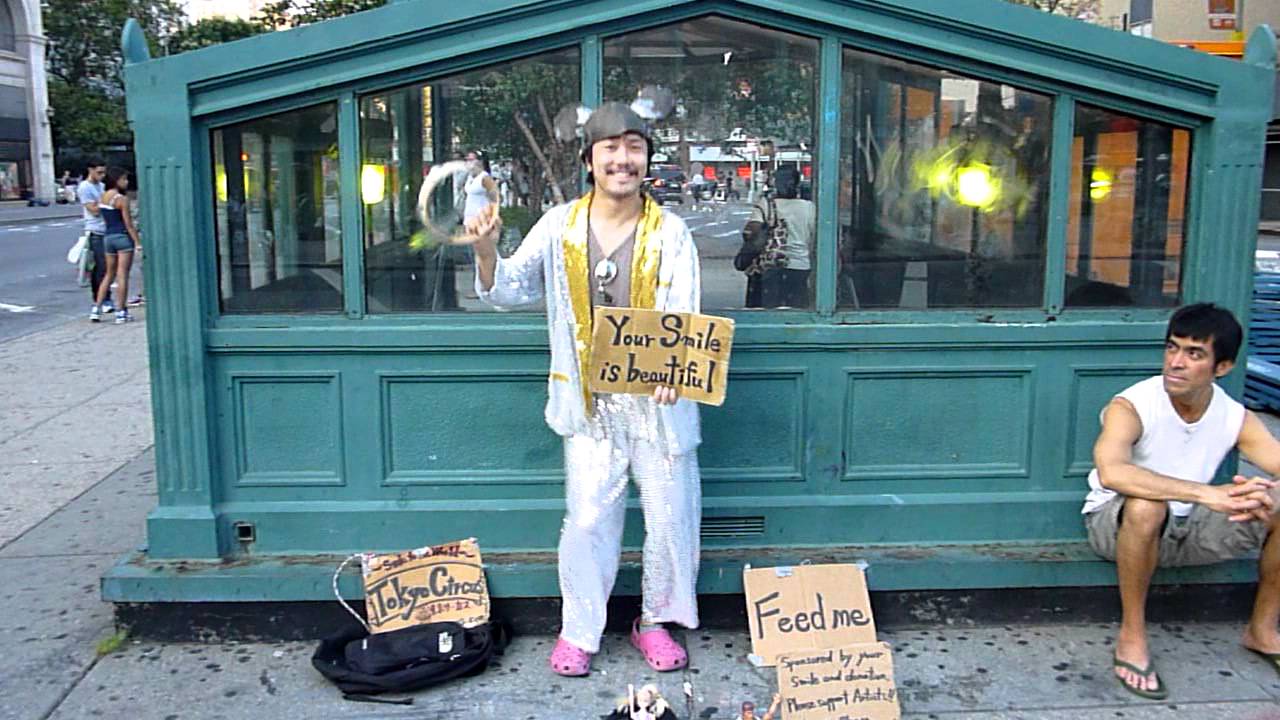 A Japanese bum comes to NYC and tries to impress everyone with his begging skills.